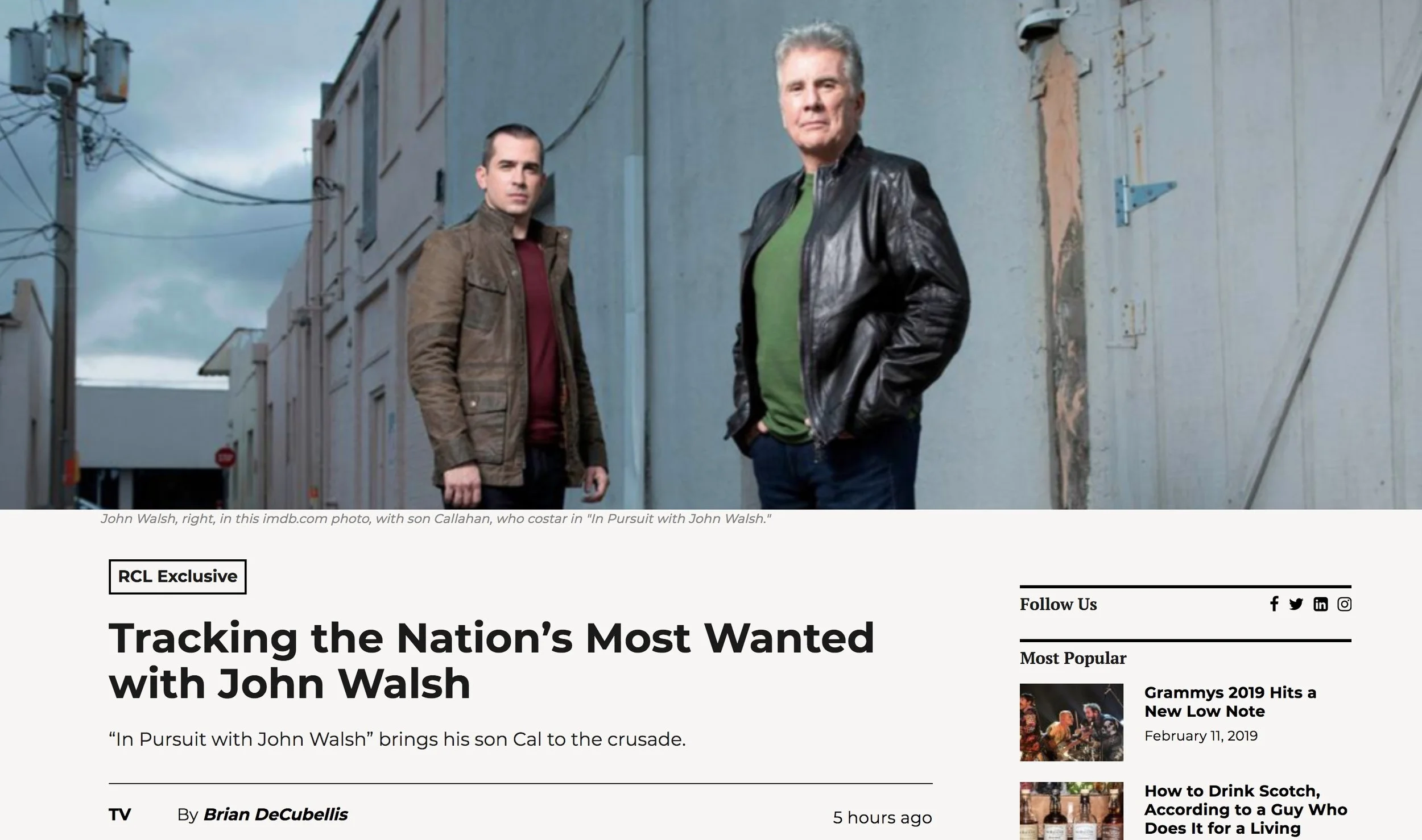 Wrote this piece on my experience behind the scenes on “In Pursuit With John Walsh” ON THE ROAD AND IN PURSUIT → February 20, 2019